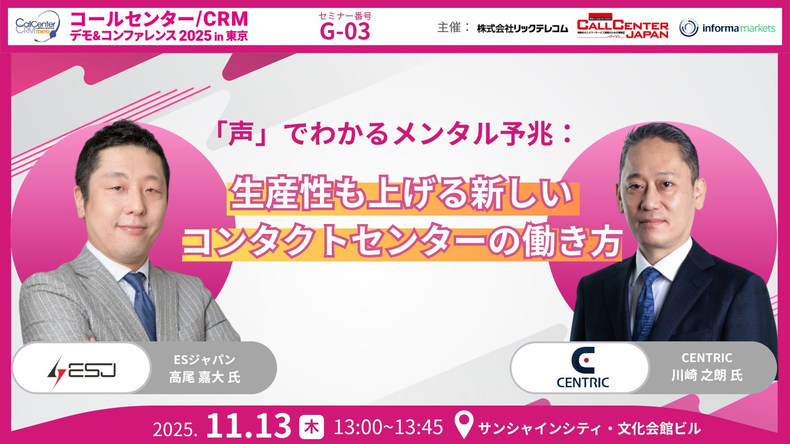 BPO総合支援サービスを展開するCENTRIC株式会社(本社:東京都豊島区、代表取締役:山田 亮、以下CENTRIC)は、2025年11月13日(木)および14日(金)に開催される「コールセンター/CRM デモ&コンファレンス 2025 in 東京」に出展いたします。